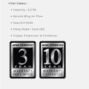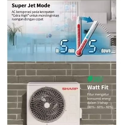 Plus Pasang Promo AC Sharp 1/2 PK AH-A5BEY Garuda Series Non Led Baru R32 360 Watt Best Seller