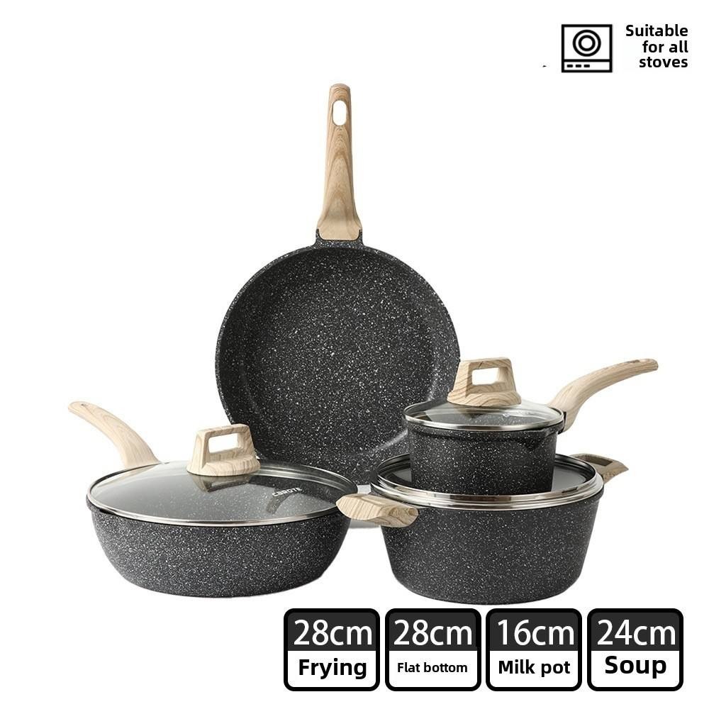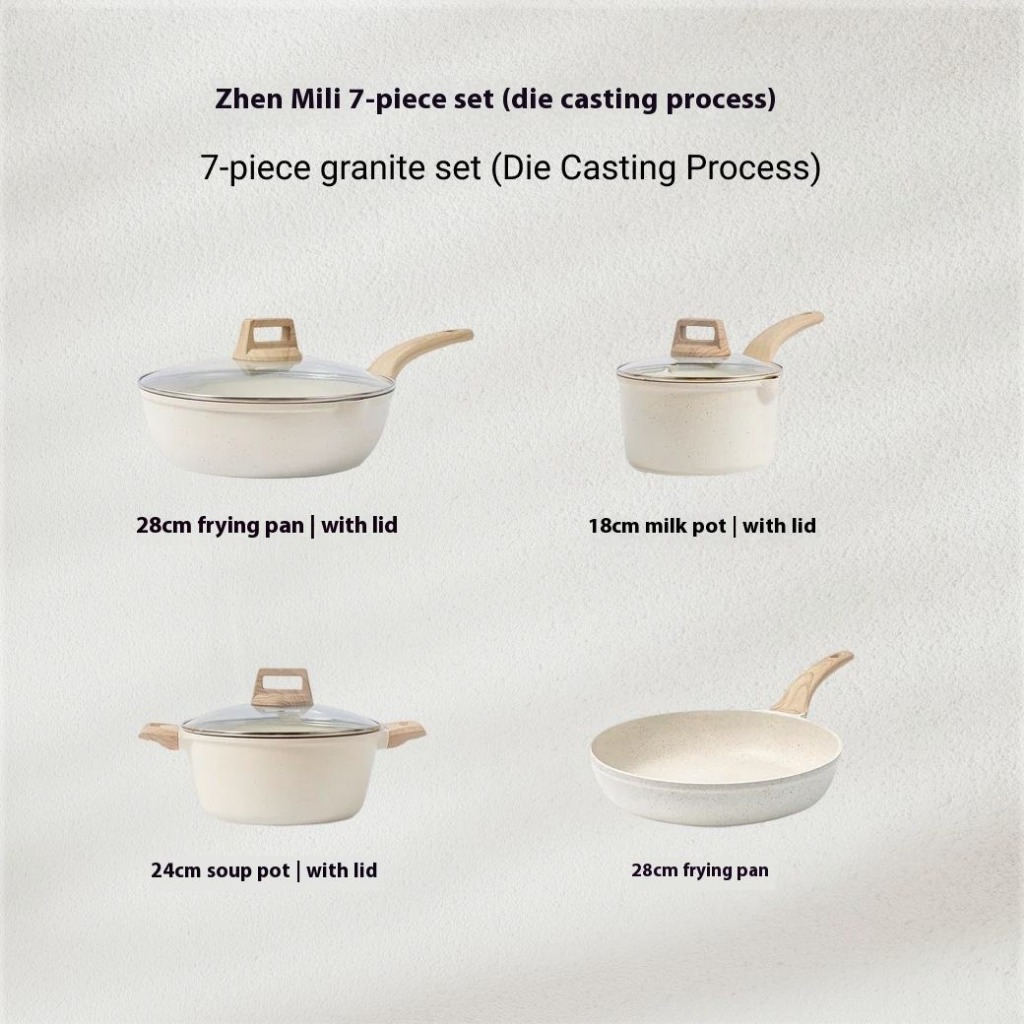 Set Peralatan Masak Dapur Berlapis Granit Standar 7 Pcs Ramah Lingkungan Set Peralatan Masak Aluminium Anti Lengket
