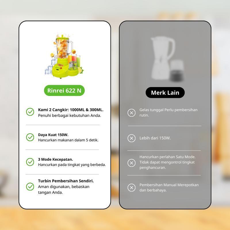 Blender 1.2L 150W + Mini Chopper Gratis - 6 Pisau Stainless Anti Bocor, untuk MPASI Bayi & Bumbu Sambal (Garansi 1 Tahun) | Diskon 55 PERSEN + Free Ongkir