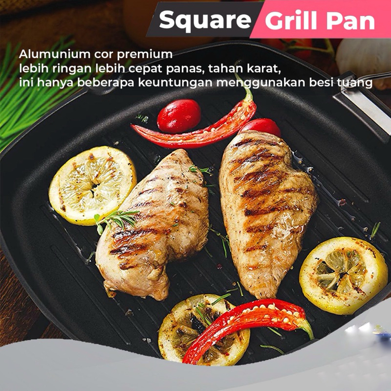 BUNDLING 3in1 Wajan Penggorengan Diamond 32cm Dengan Pegangan + Panci Presto 3.5L + Square Grill Pan Panci BBQ