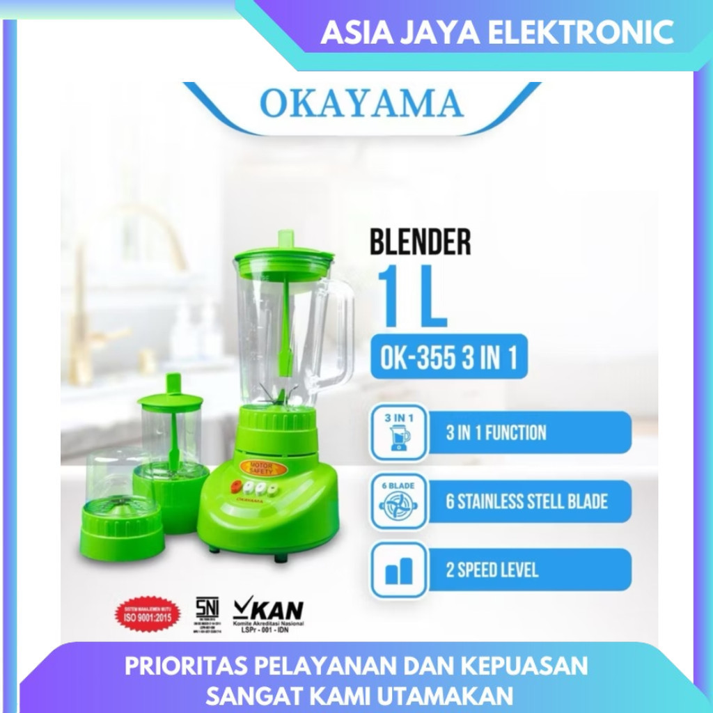 OKAYAMA 1 Liter Blender 3in1 Plastik Hijau OK-355