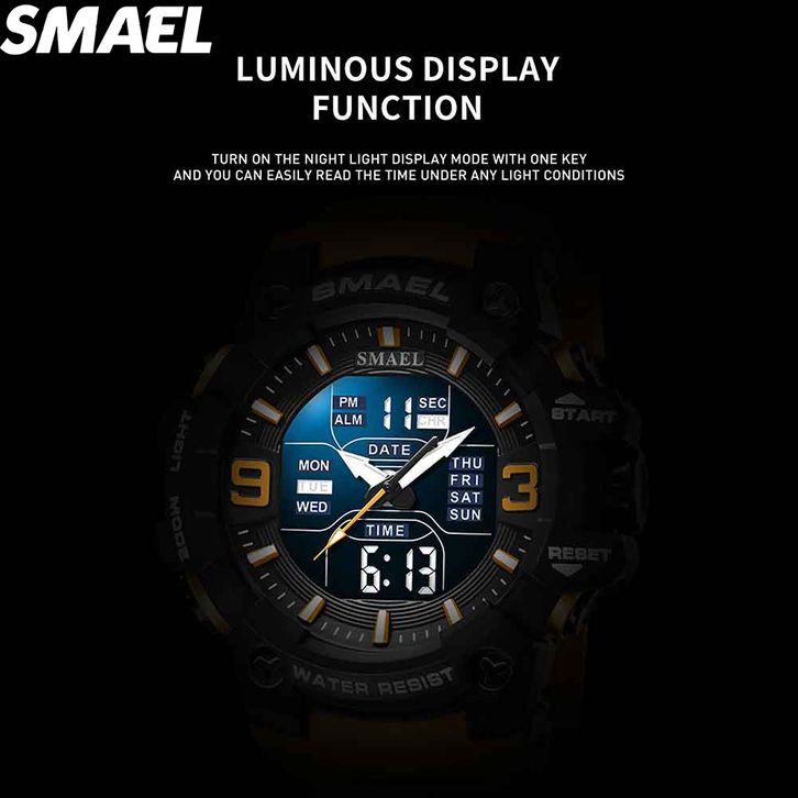 SMAEL 8049MC Jam Tangan Elektronik Outdoor Tahan Air Kamuflase Olahraga Pencahayaan Malam Taktis Pria Militer Arloji Pen