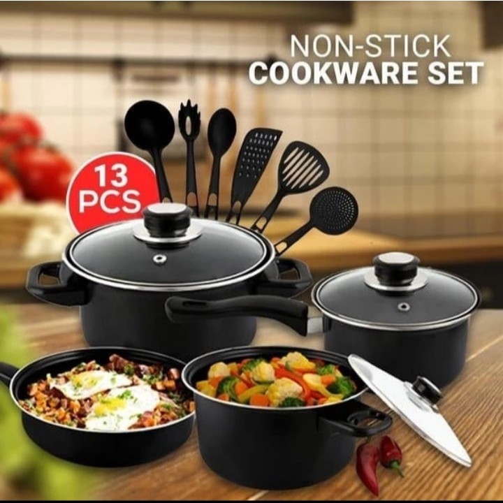 Cookware Panci Set Wajan Penggorengan Spatula 1 Set Isi 13 Pcs Frypan Saucepan / Set Panci isi 13 Pcs / Cookware Set Penggorengan