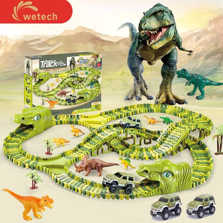 Wetech Dinosaurus Rel Mobil 240Pcs Buah Rel Dual Car Mainan Rel Edukatif Mainan Kereta Api Rail