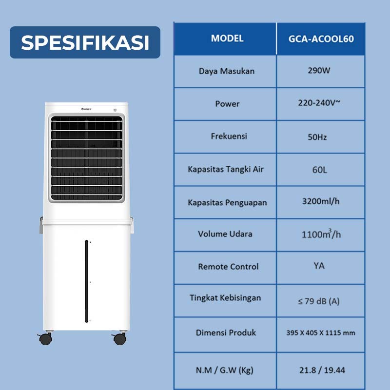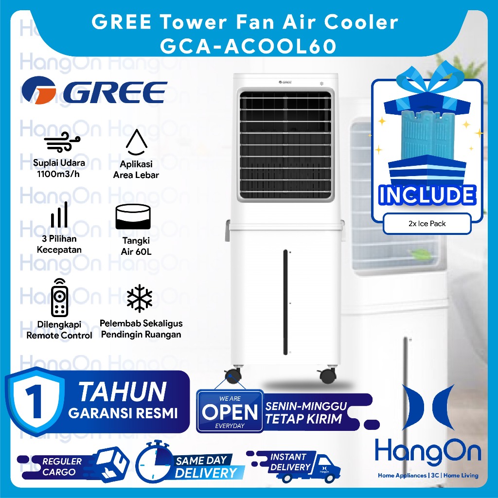 GREE Tower Fan Air Cooler Kapasitas 60 Liter 60L GCA-ACOOL60 Penyejuk Udara / Ruangan with Honeycomb + Pra-filter Kipas Angin Acool60