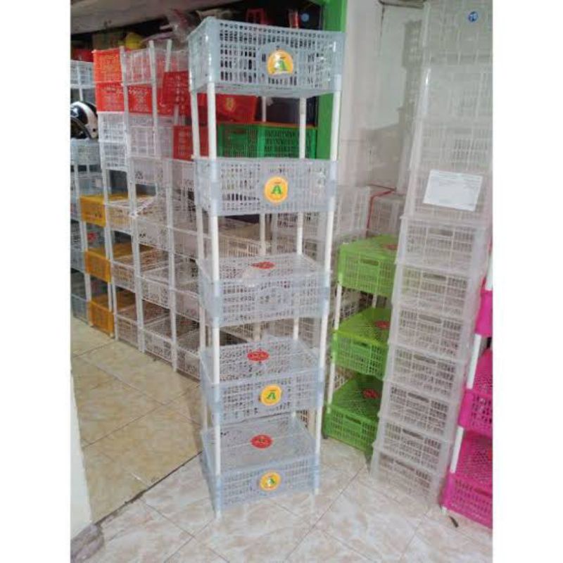 Rak keranjang plastik buah serbaguna Rak Chiki dan permen tempat penyimpanan alat rumah tangga