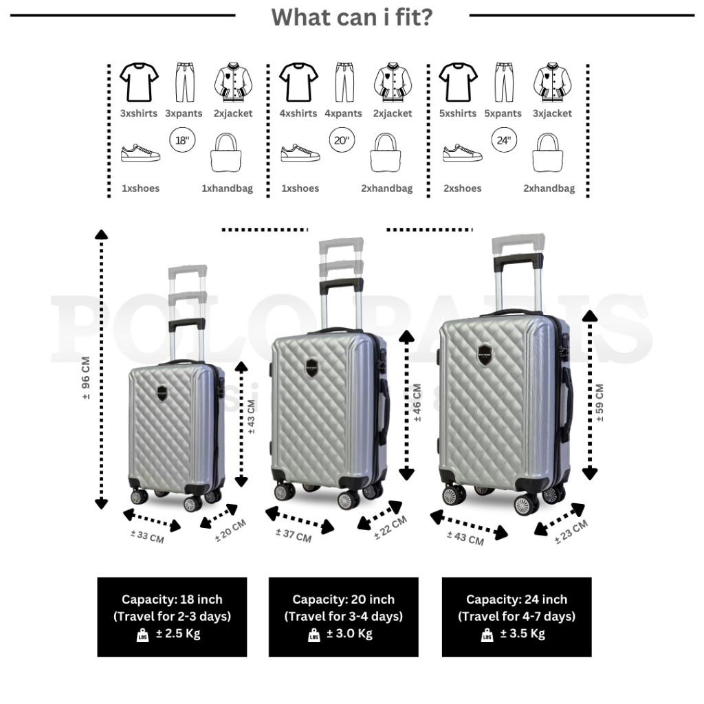 POLOPARIS - Koper 077 18/20/24 Inch Fiber Abs Kunci Kombinasi 3 Angka Roda 360
