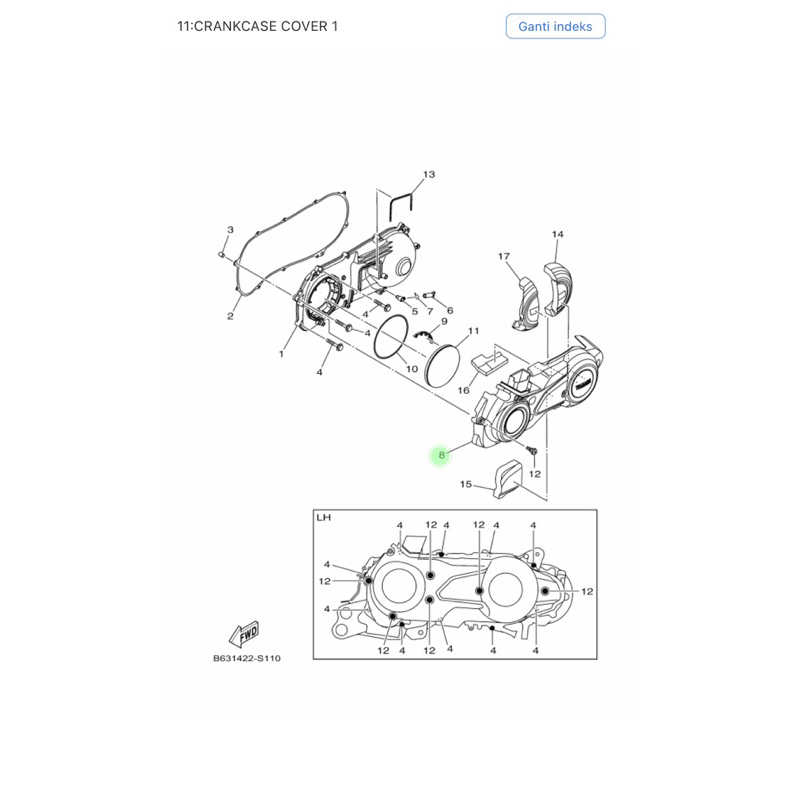 Cover Tutup CVT Aerox Old GDR 155 Lexi Cover, Crankcase 3 Asli Ori Original Yamaha B65 - E5431 - 00