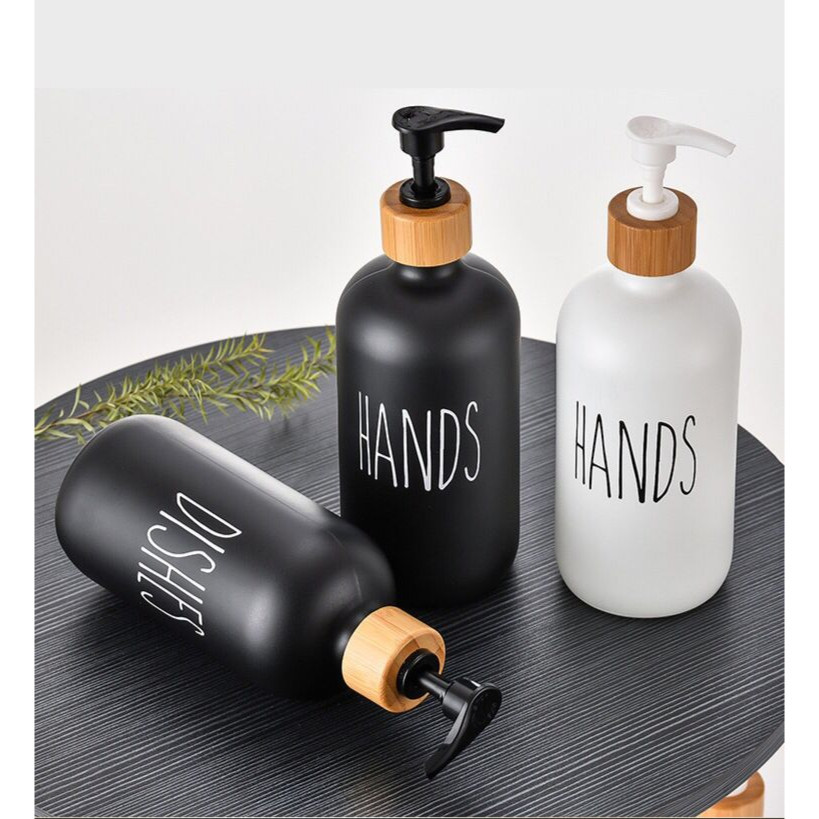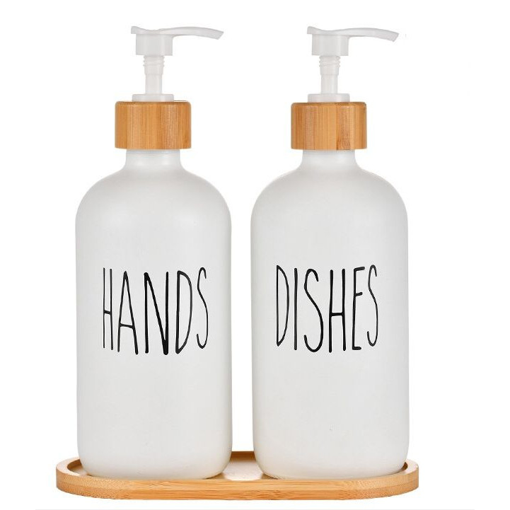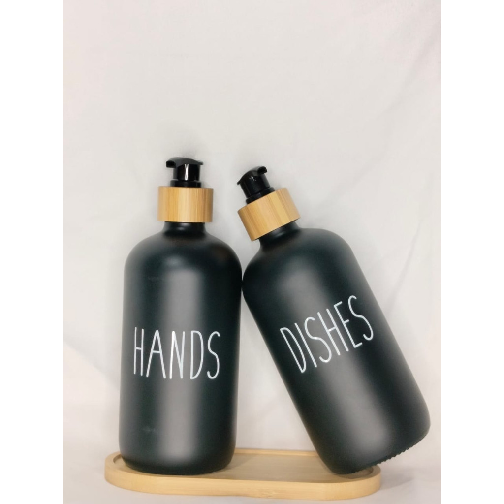 [MS] Botol Tempat Sabun Tangan dan Cuci Piring Kaca / Botol Sabun Estetik 2in1 dengan Nampan Kayu