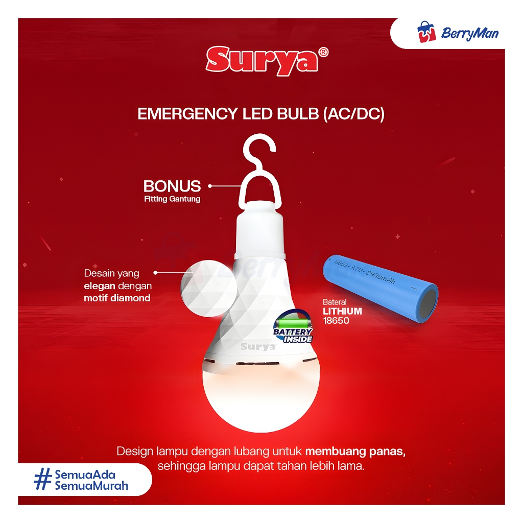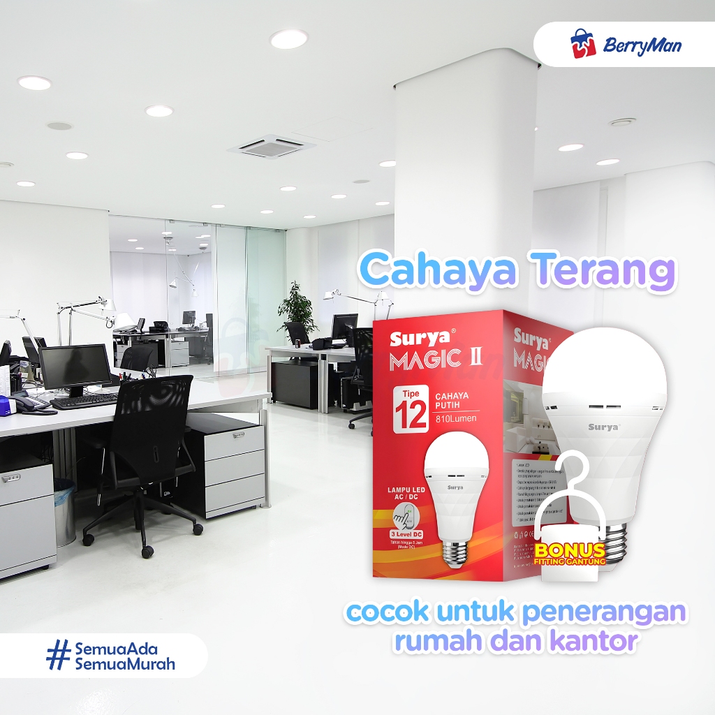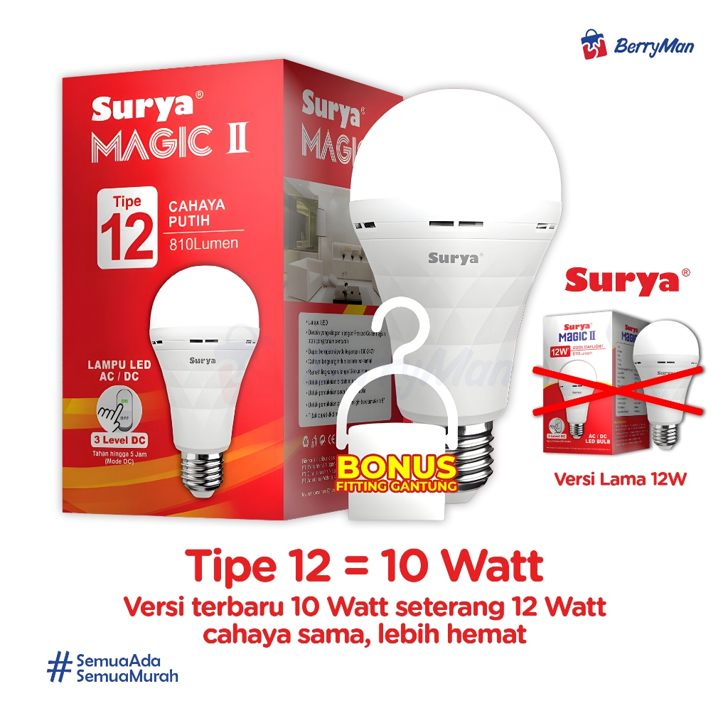 Surya Magic II Lampu Bohlam LED Emergency Tipe AC / DC 9W 12W 18W Cahaya Putih Super Terang