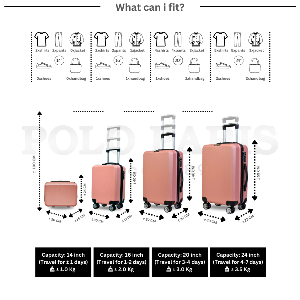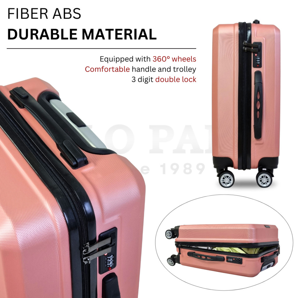 POLOPARIS - Koper Polos 001 16/20/24 Inch Fiber Abs Kunci Tanam Kombinasi 3 Angka Roda Putar 360 Tahan Banting