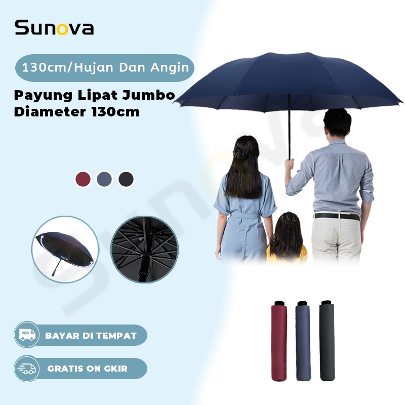 Sunova Payung Lipat Besar Jumbo Diameter 130cm Kualitas tinggi khusus payung tahan angin yang
