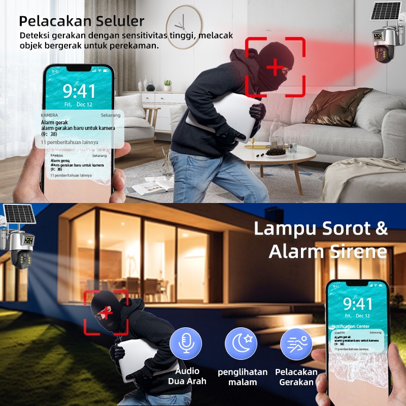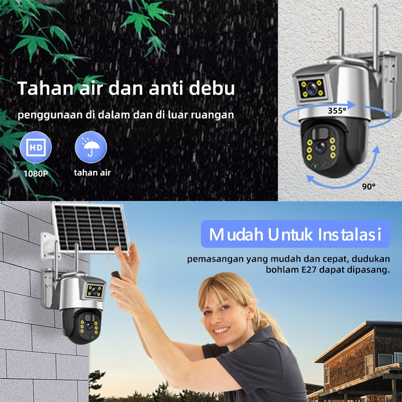 Kamera CCTV 4G Solar 2 Lensa 1080P Outdoor Tahan Hujan | Audio 2 Arah | Gratis SIM Franwell T2