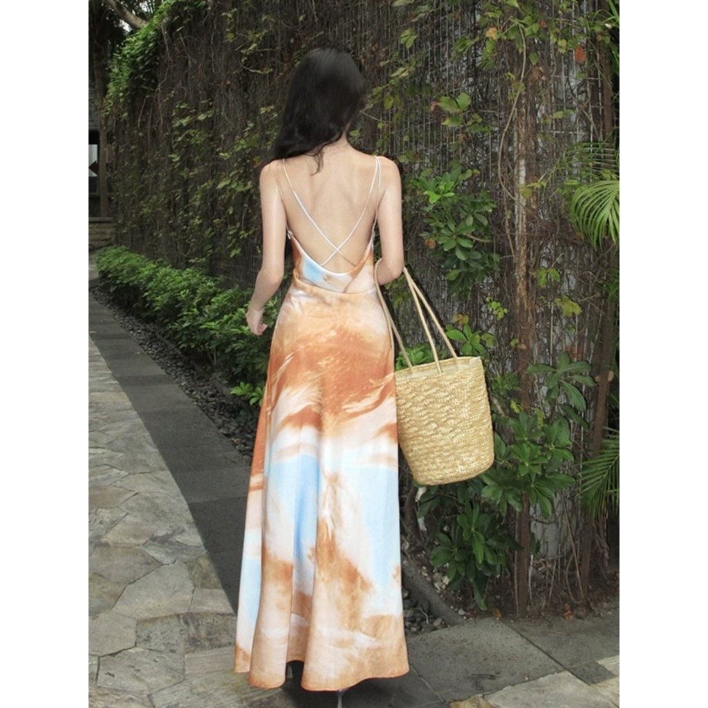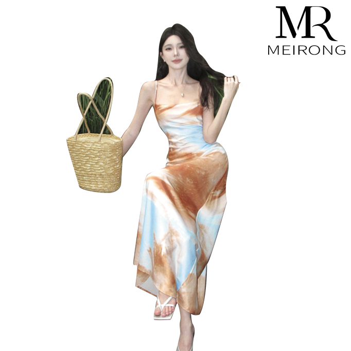 Meirong baju dress pantai panjang wanita import jumbo korean style dress maroon terbaru 2025