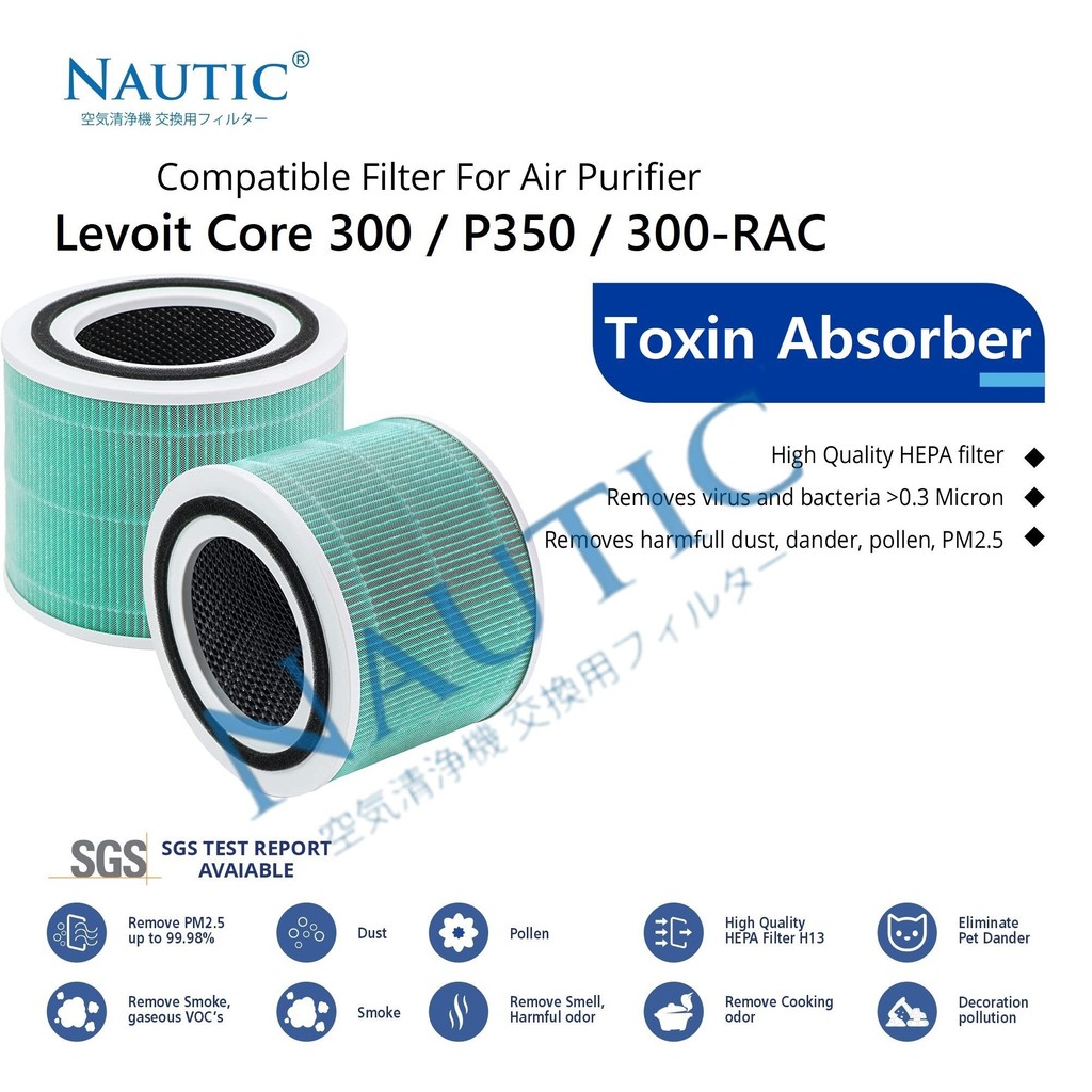 Filter Pengganti HEPA Filter untuk Air Purifier Levoit Core 300 - Toxin Absorber untuk Levoit Core P350, Core 300/300s / Filter Levoit 300s