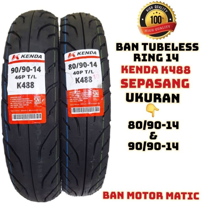 BAN LUAR MOTOR KENDA 80/90 90/90 14 K488 46P TUBELESS harga 1pasang depan belakang ya bosku ori dr kenda