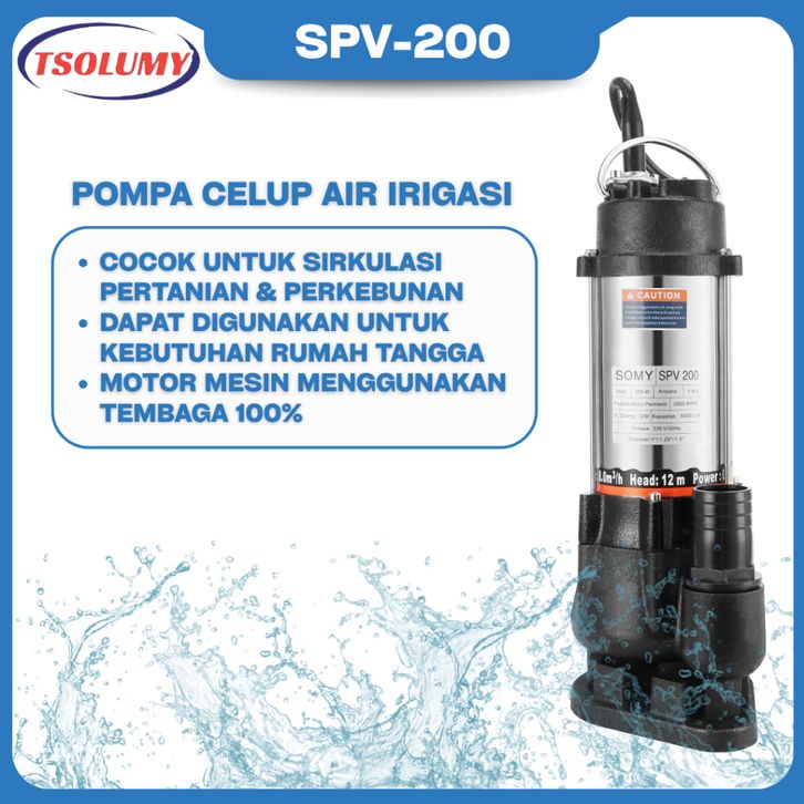 Tsolumy Pompa Celup Air Kotor SPV200 Sewage Pump1.5 inch Mesin Pompa Air Pompa Submersible Limbah