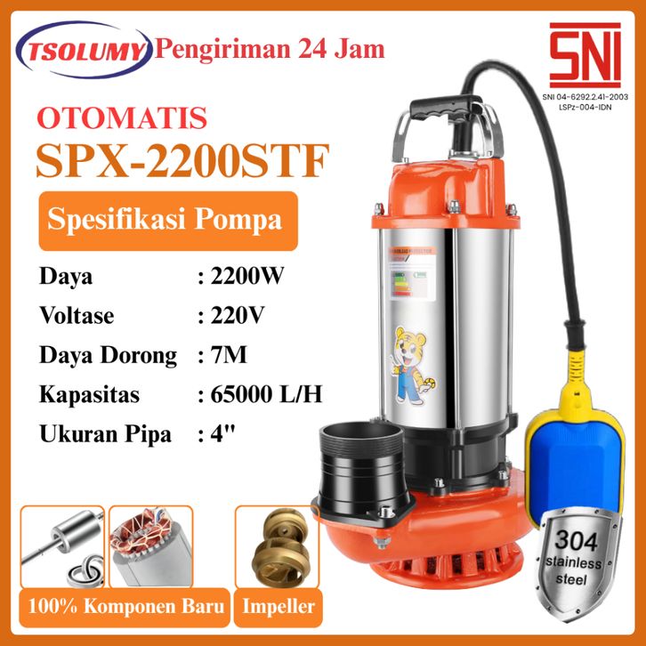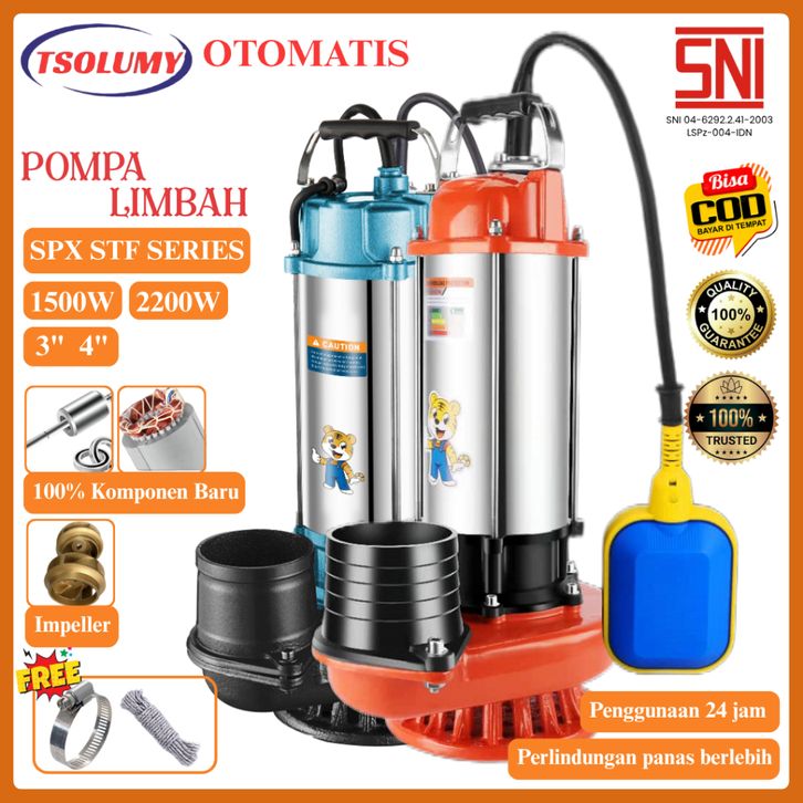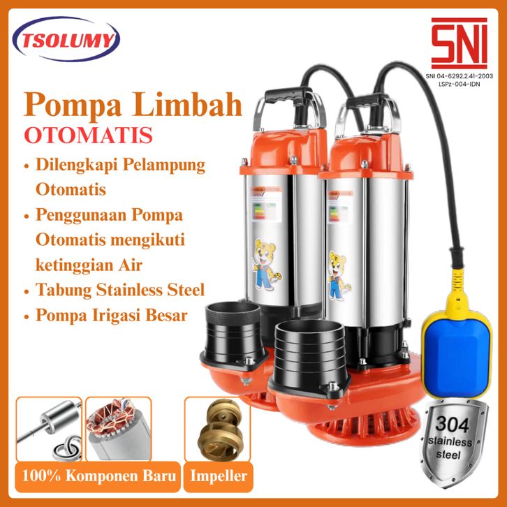 Tsolumy Pompa Celup Air Kotor Otomatis 1500-2200w Pompa Air Pabrik Pompa Lumpur Banjir Pompa Limbah