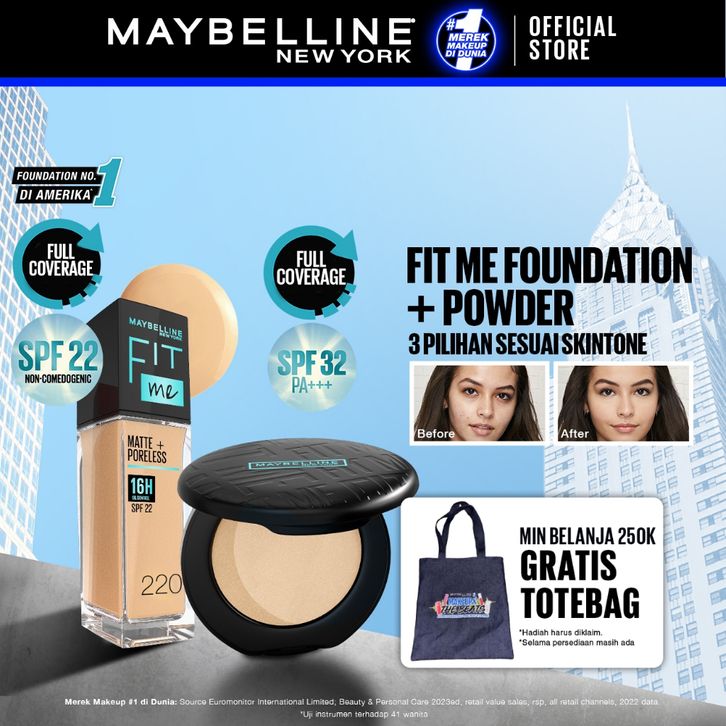 Foundation waterproof Maybelline Paket Makeup FIT ME Compact Powder + FIT ME liqu-id Foundation FREE GIFT | Oil Control