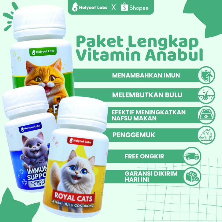 Holycatlabs Paket Royal Cats Vitamin Kucing Bulu Gondrong | Penambah n4f5u Makan | Immune Anti VIRUS