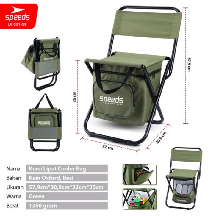 SPEEDS Kursi lipat camping portable outdoor plus tass pendingin multifungsi kursi lipat portable camping outdoor indoor