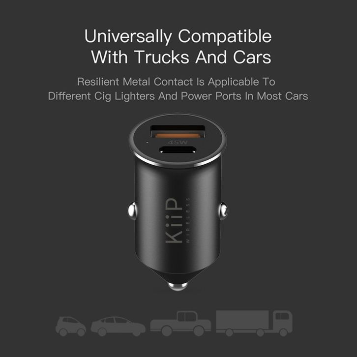 Charger mobil KIIP WIRELESS C8 CAR CHARGER MOBIL 45W TYPE-C+USB FAST CHARGING