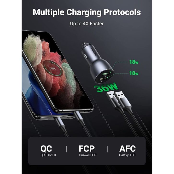 Charger mobil UGREEN Car Charger 30W 36W 63W 69W 75W 130W Dual USB-A USB-C PORT Fast Charging QC 3.0 PD Android iOS For