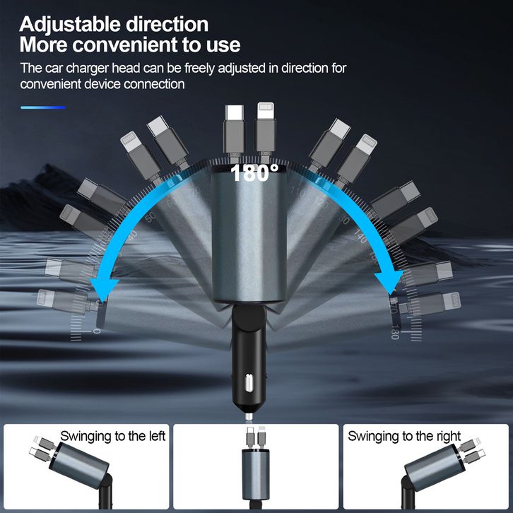 Charger mobil FURINTAMA Car Charger Mobil 4 in 1 Port USB IOS Android 120W Pengisian Super Cepat Kabel Tarik Ulur