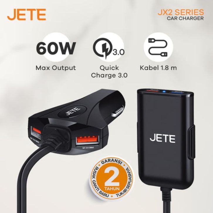 Charger mobil Jete JX2 Charger Mobil Car Charger 60W Output Quick Charger 3.0 - Garansi 2 Tahun