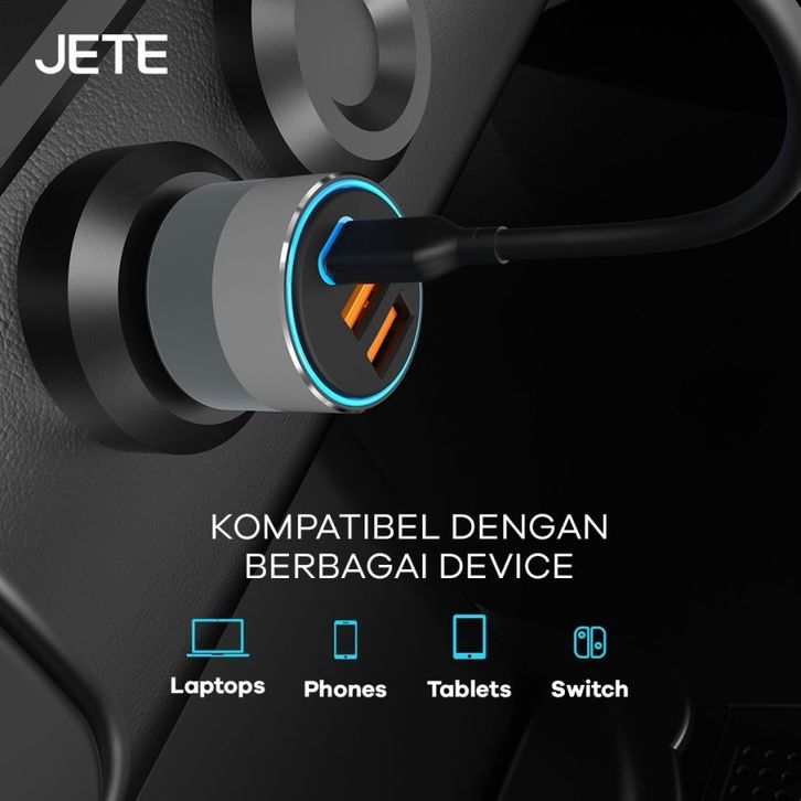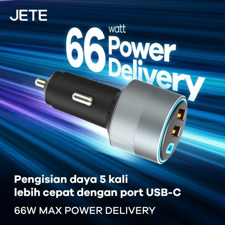 Charger mobil Car Charger JETE J8 66W 3 Port Fast Charging With Type C PD - Garansi 2th