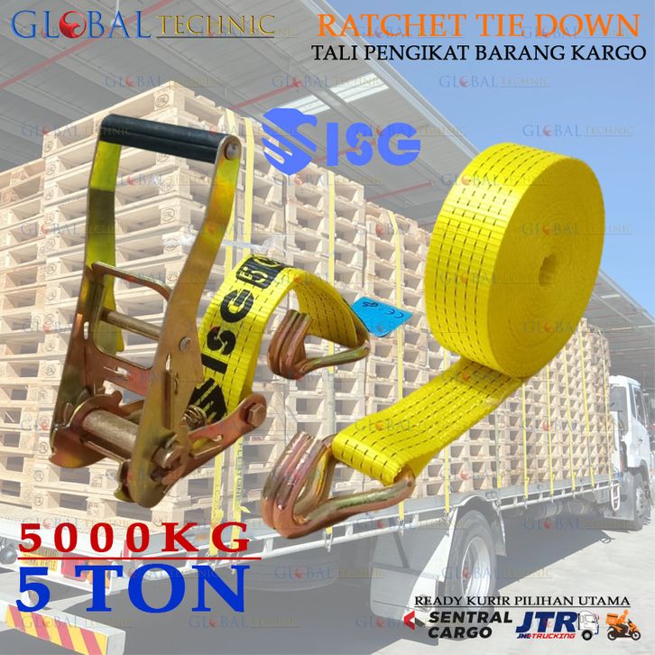 Ratchet Tie Down Webbing Lashing Belt 5CM X 6-15 Meter 5 TON Double J-Hook / Tali Ikat Barang Kargo