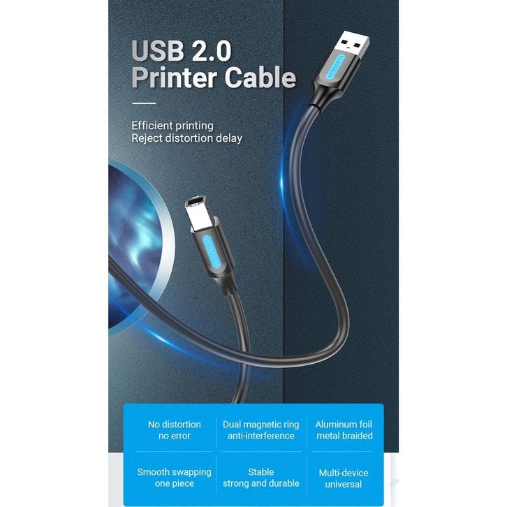 [Ready Stock] Vention Kabel Data USB 2.0 Type A to B - COQ