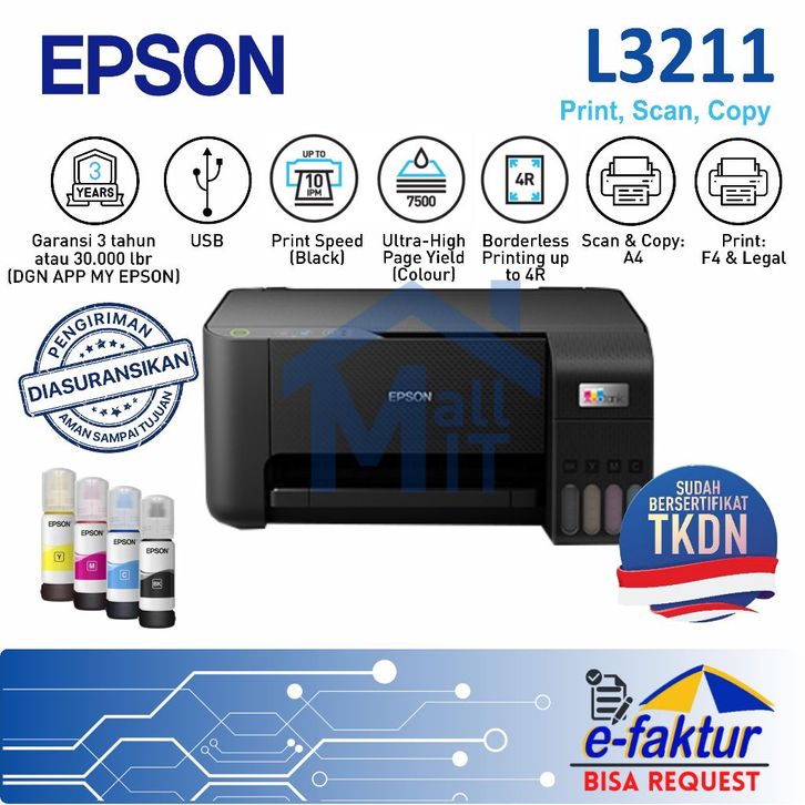EKSKLUSIF MALLIT EPSON Printer Epson L3210 L-3210 L 3210 L3211 L-3211 L 3211 3 IN 1 Pengganti Epson L3110 Print
