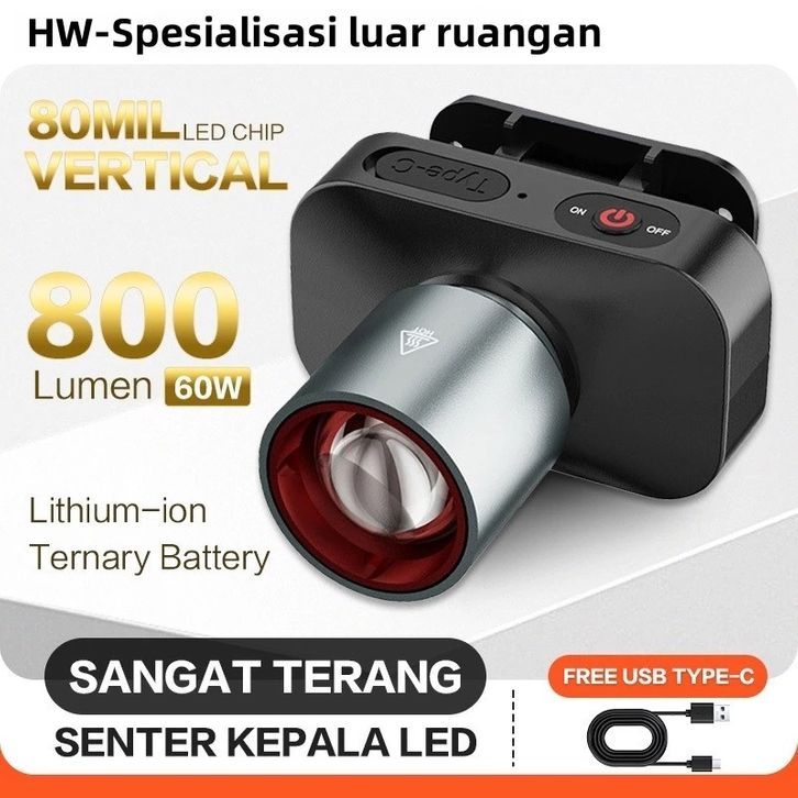 PREMIUM 【Garansi 10 tahun】 Headlamp LED 500W Penerangan terus menerus selama 800 H senter super terang lampu
