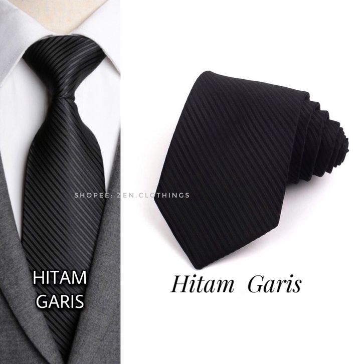 BARU Dasi Hitam Pria Ikat Manual Panjang Dewasa Warna Hitam Polos dan Motif Garis Salur Formal inalb
