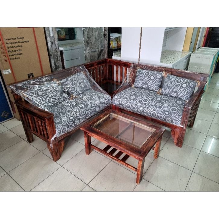 Kursi Kayu L Sudut Lengkap Meja Kaca