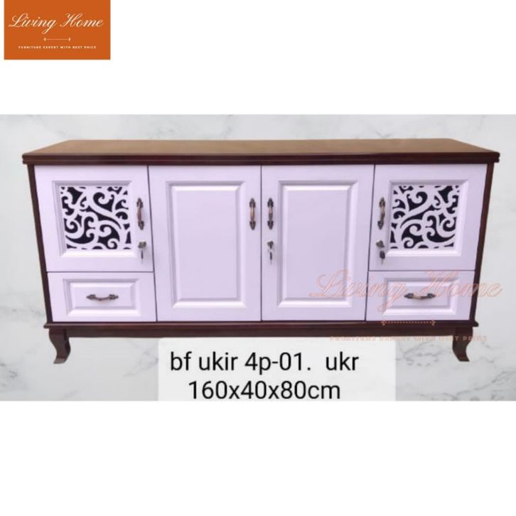 PROMO Buffet Tv Kayu Ukir 4 Pintu Putih Bagus Tahan Lama ORIGINAL