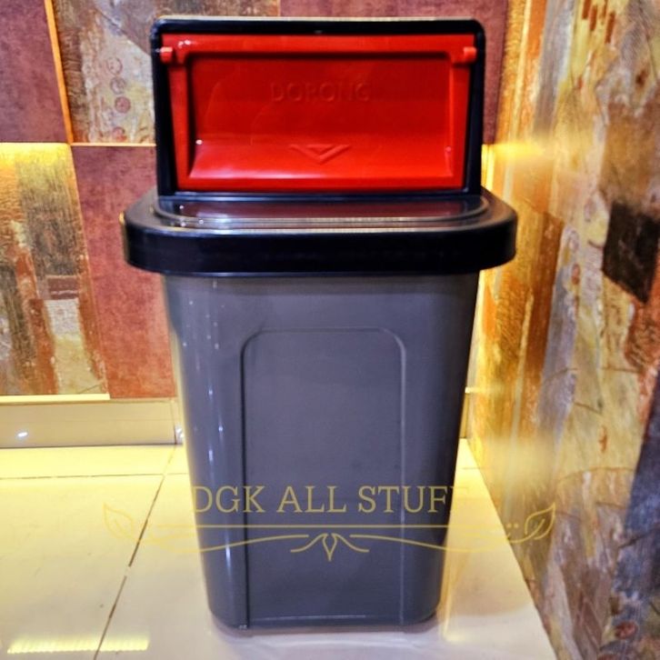 PROMO Tong Tempat Keranjang Sampah Bertutup Tutup Goyang Dorong Segi 60L 60 L 60 Liter Plastik Warna Abu Hitam JUMBO BE