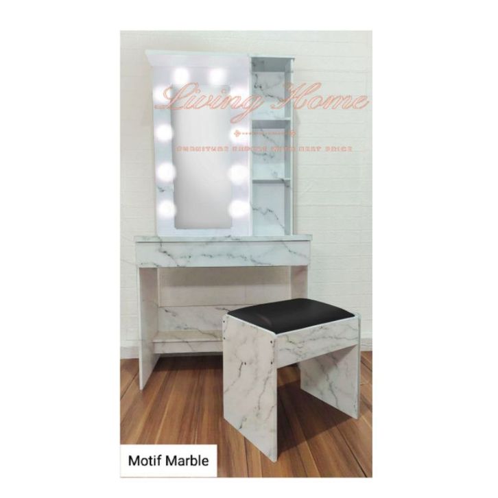 PROMO Meja Rias Motif Marble Putih Full Lampu ORIGINAL