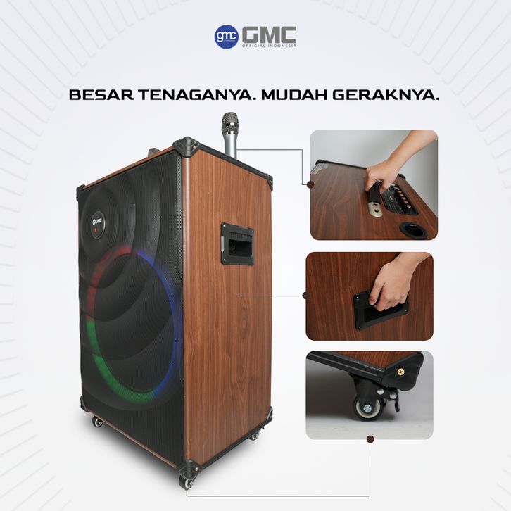 GMC Speaker 883J – Speaker Karaoke Bluetooth 18” – 160W, 2 Mic Wireless, Lampu LED, USB, AUX, TF