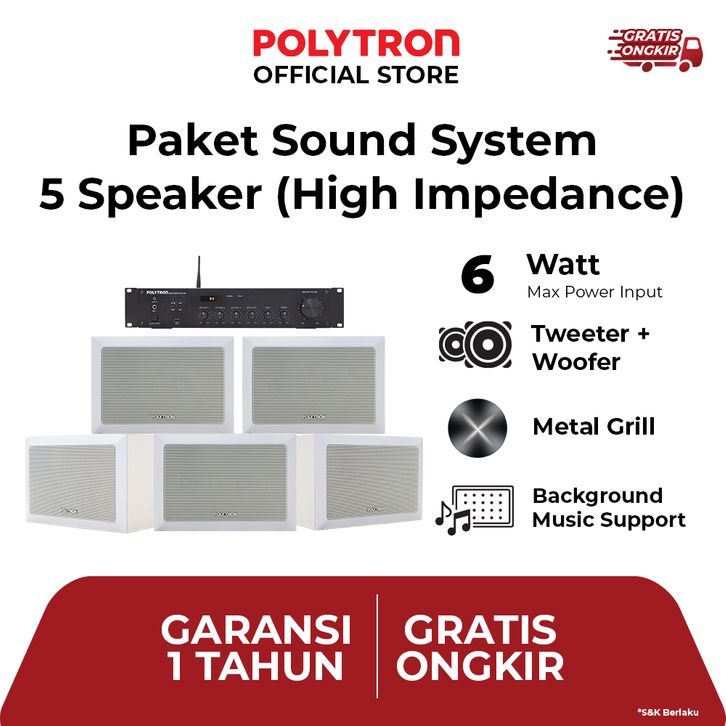 Polytron Sound System Sekolah Masjid Mushola Kantor (5 Wall Speaker)