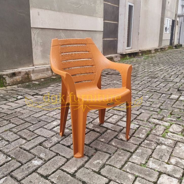 PROMO Kursi Bangku Santai Sandar Sender Sandaran Bertangan Warung Kantin Teras Cafe Kafe Motif Kayu Plastik Napolly ORI