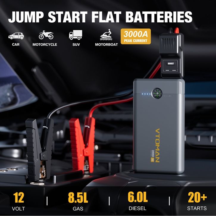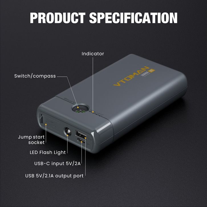 VTOMAN V5 6000 mAh Jump Starter Aki Mobil Motor Power Bank Jumper Aki Alat Jamper Aki Power Bank Mobil Jemper Aki Port