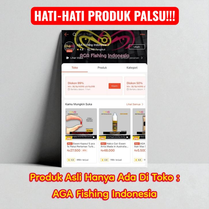 AGA Essen Super Ikan NILA Campuran Umpan Pancing Original 30mili