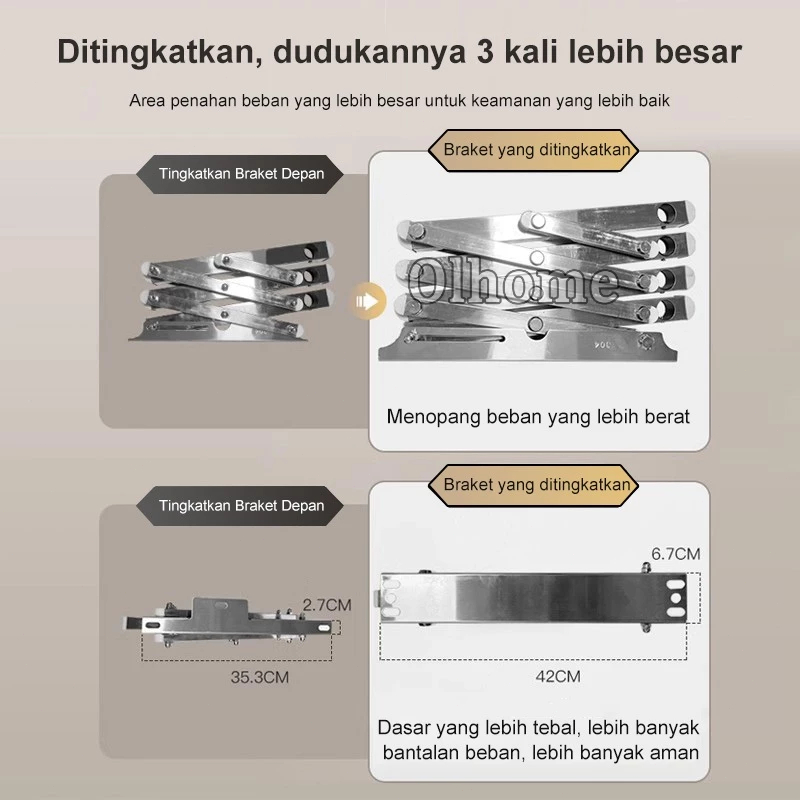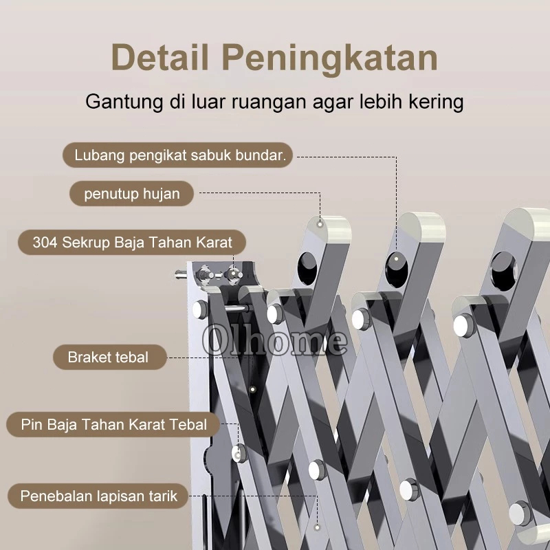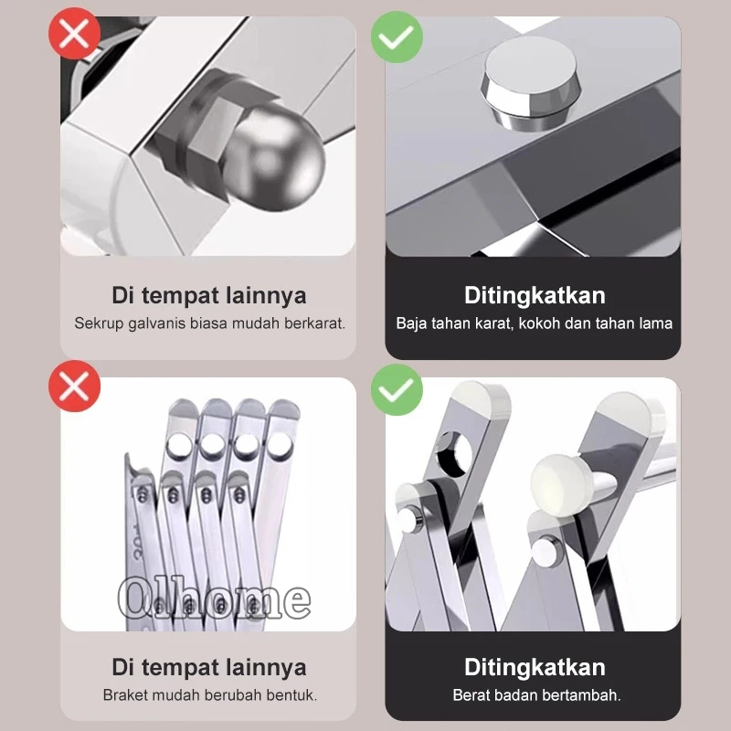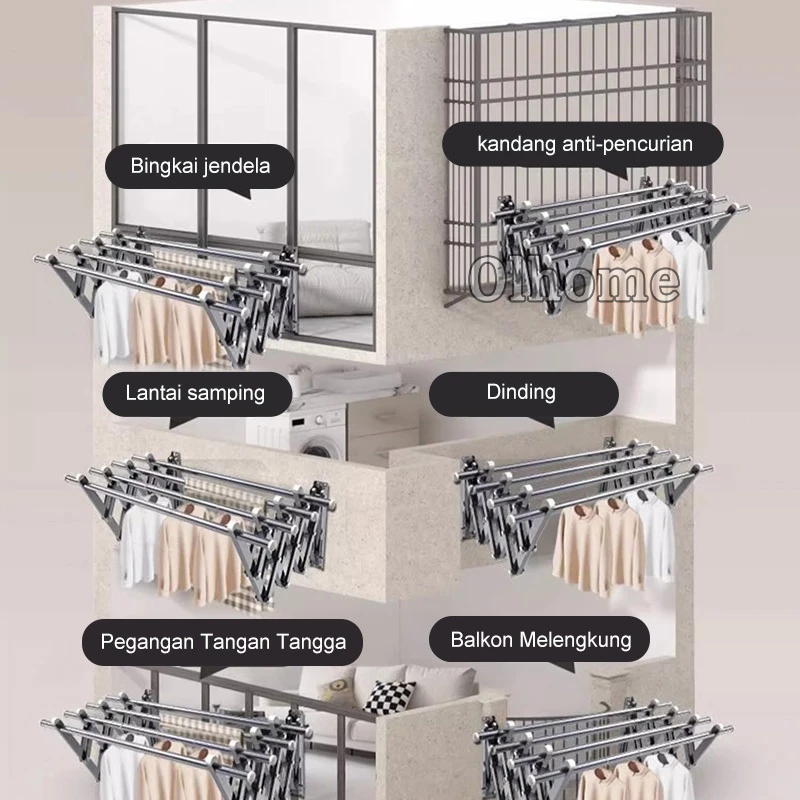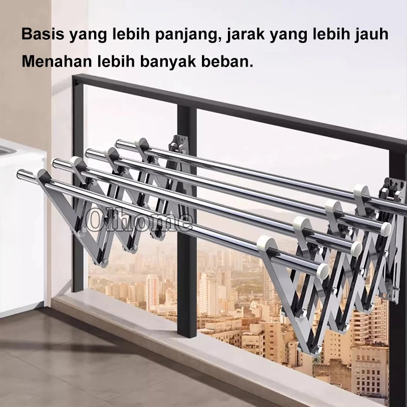 Olhome Jemuran Baju Tempel Dinding Jemuran Pakaian Lipat Stainless Jemuran Tempel Dinding Multilayer