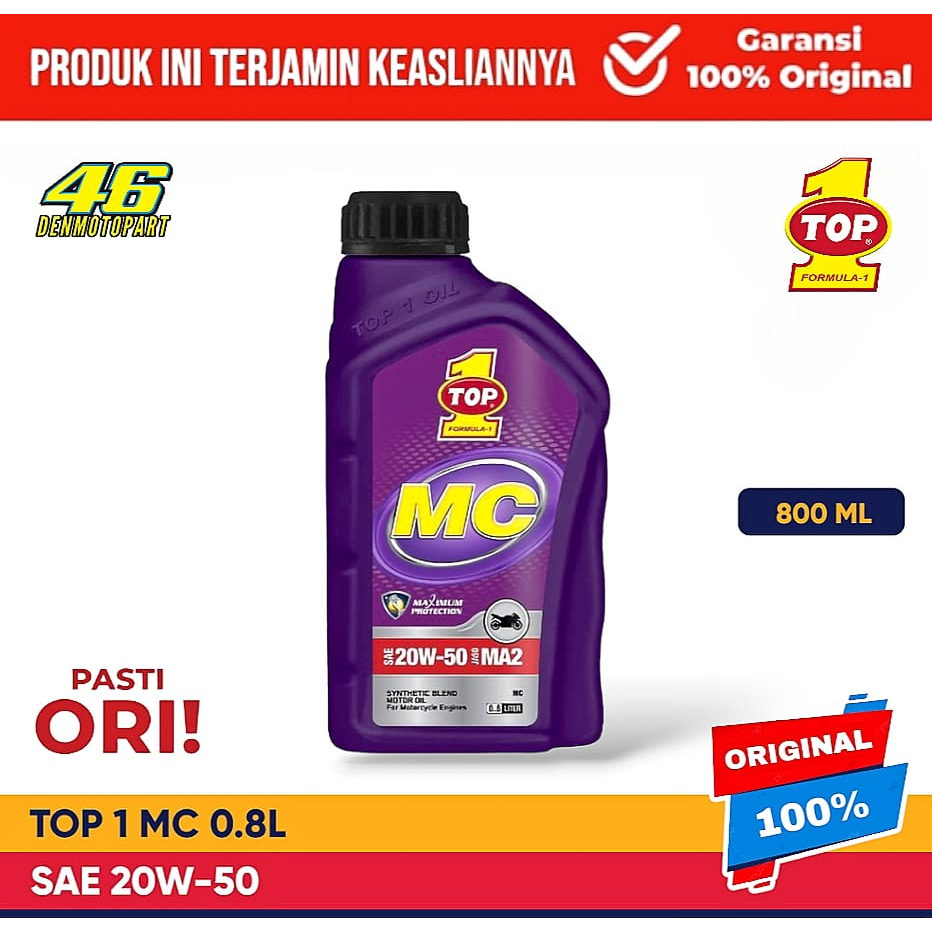 Oli Mesin T0P 1 MC Sae [ 20W-50 ] 800ml JASO MA2 Original 100 PERSEN ASLI MOTOR - Supra , Grand , Prima , Legenda , Revo , Karisma , Blade , Jupiter , Smash , Vega , Shogun , Mx
