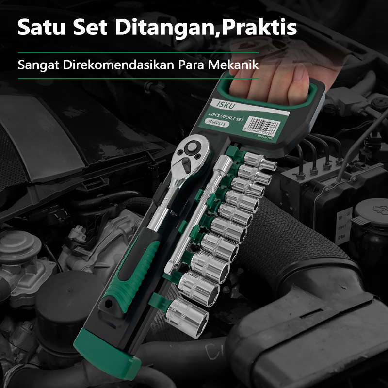 Isku Kunci Shock Set 12pcs/Kunci Torsi Gagangk Kunci Sok Rachet Set/1/4 Original Mata Kunci Shock Set /Mata Kunci Shock