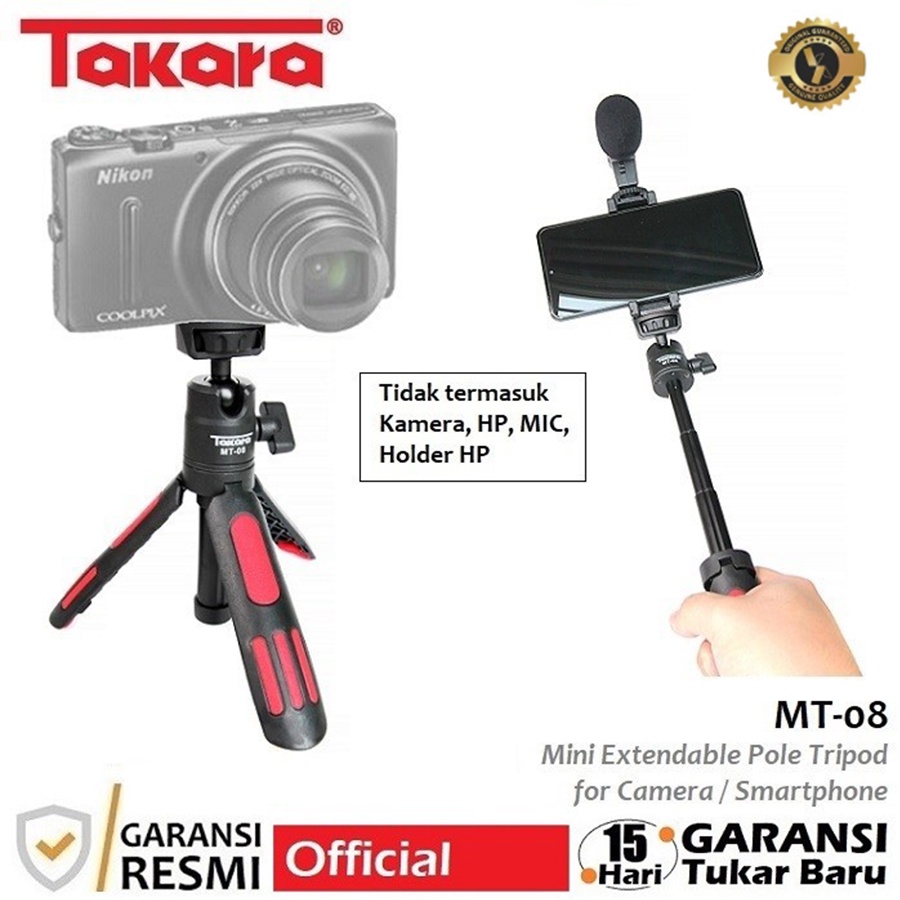 Takara MT-08 Extendable Mini Tripod Selfie Stick for Camera, HP, etc