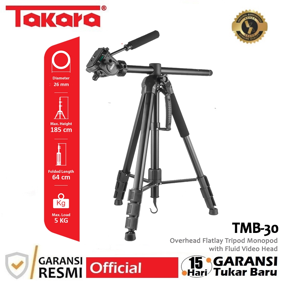 Takara TMB-30 Overhead Flatlay Tripod Monopod with Fluid Video Head