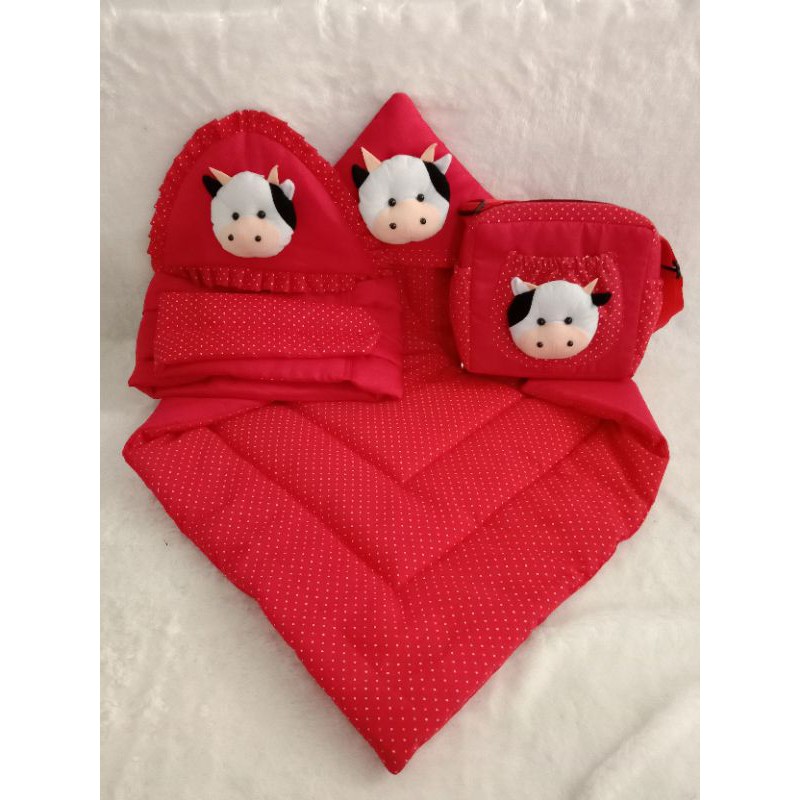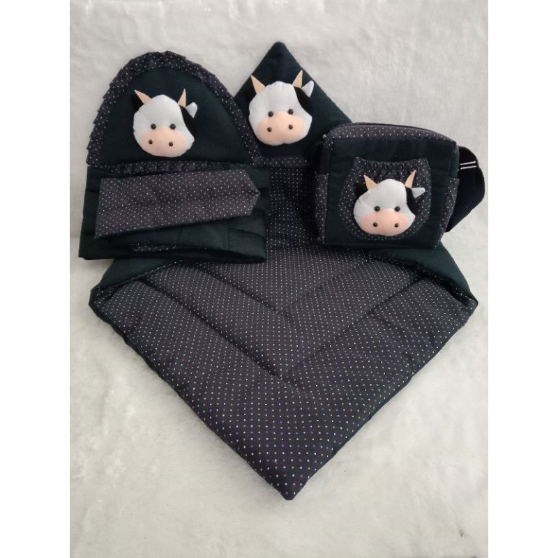 3in1 tas kecil.selimut & gendongan.topi.renda motif boneka sapi